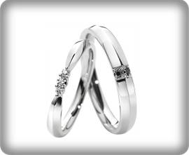女戒以中央焦點呈現出蝴蝶結感的甜美設計,男戒綴以兩顆黑鑽,俐落感兼具時尚新風格。