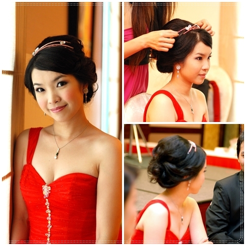 淳淳幫我把頭髮捲上去固定住,放上一個簡單頭飾。