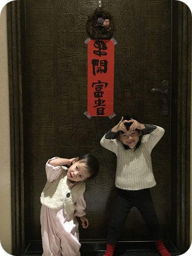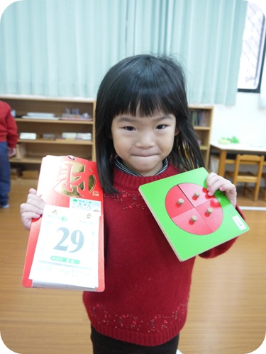在學校,大家每個人都要跟園長媽咪拜年,還會領個小紅包喔!