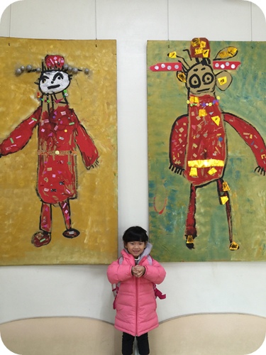 後面兩個大掛畫是大班孩子們完成的門神,好喜氣啊!