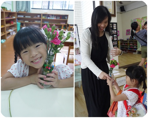 當然也有溫馨時刻,唱母親節的歌、送手作小禮物,